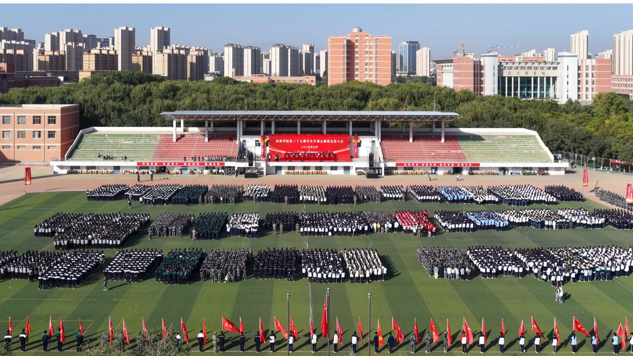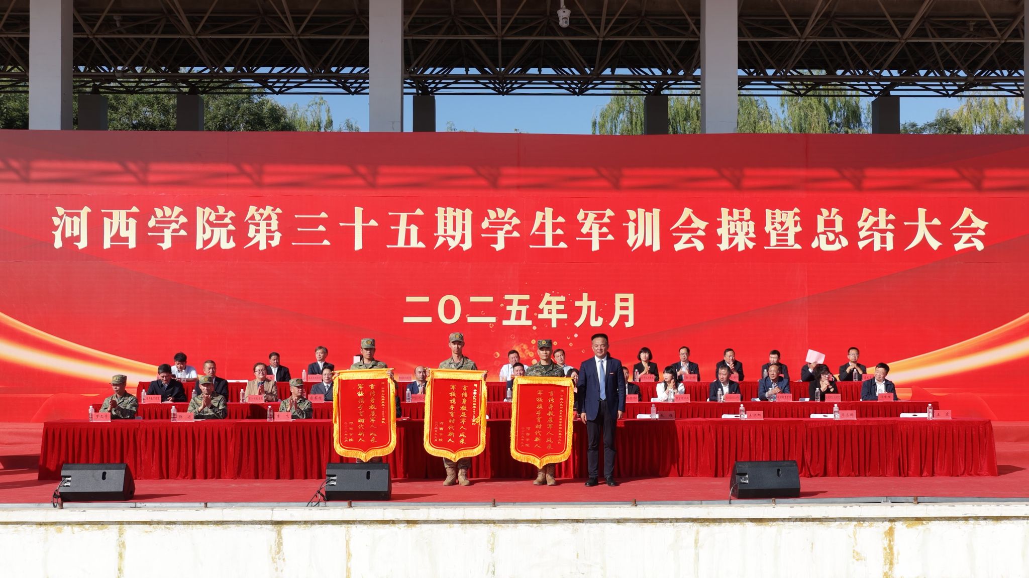 9 月19日,河西学院第三十五期(2025级)学生军训会操暨总结大会在校本部塑胶操场举行。学校党委书记梁兆光,党委副书记、校长李广,党委副书记高荣,甘州区人民武装部上校政治委员李飞,张掖军分区战备建设处中校副处长郭丹,中国人民解放军31652部队、中国人民解放军96747部队、中国人民解放军武装警察部队张掖支队领导出席。党委常委、副校长赵柱主持大会。