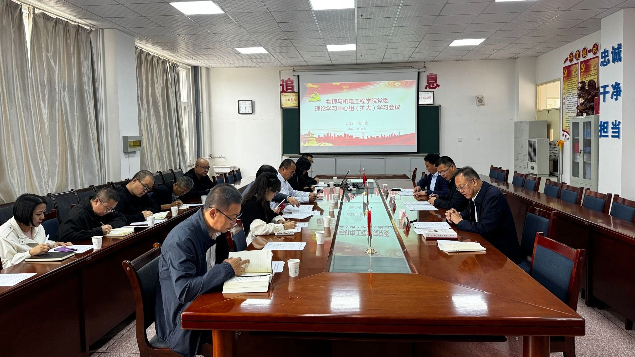 9月16日,物理与机电工程学院召开党委理论学习中心组(扩大)学习会,党委常委、副校长王国英列席旁听,学院党委理论学习中心组成员、党支部书记、教研室主任参加。