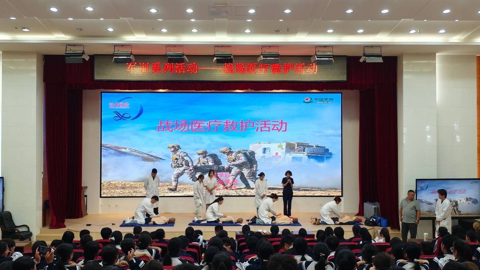 战场医疗救护科目为《普通高等学校军事课教学大纲》规定教学内容。通过学校自2016年起创新性地将急救培训纳入学生军训体系,于2022级学生军训中实现全员覆盖。作为2017年教育部认定的“国防教育特色学校”和2023年“第二批全国学校急救教育试点学校”,学校将继续推进急救教育与国防教育的深度融合,筑牢校园安全防线,提升学生国防素养。