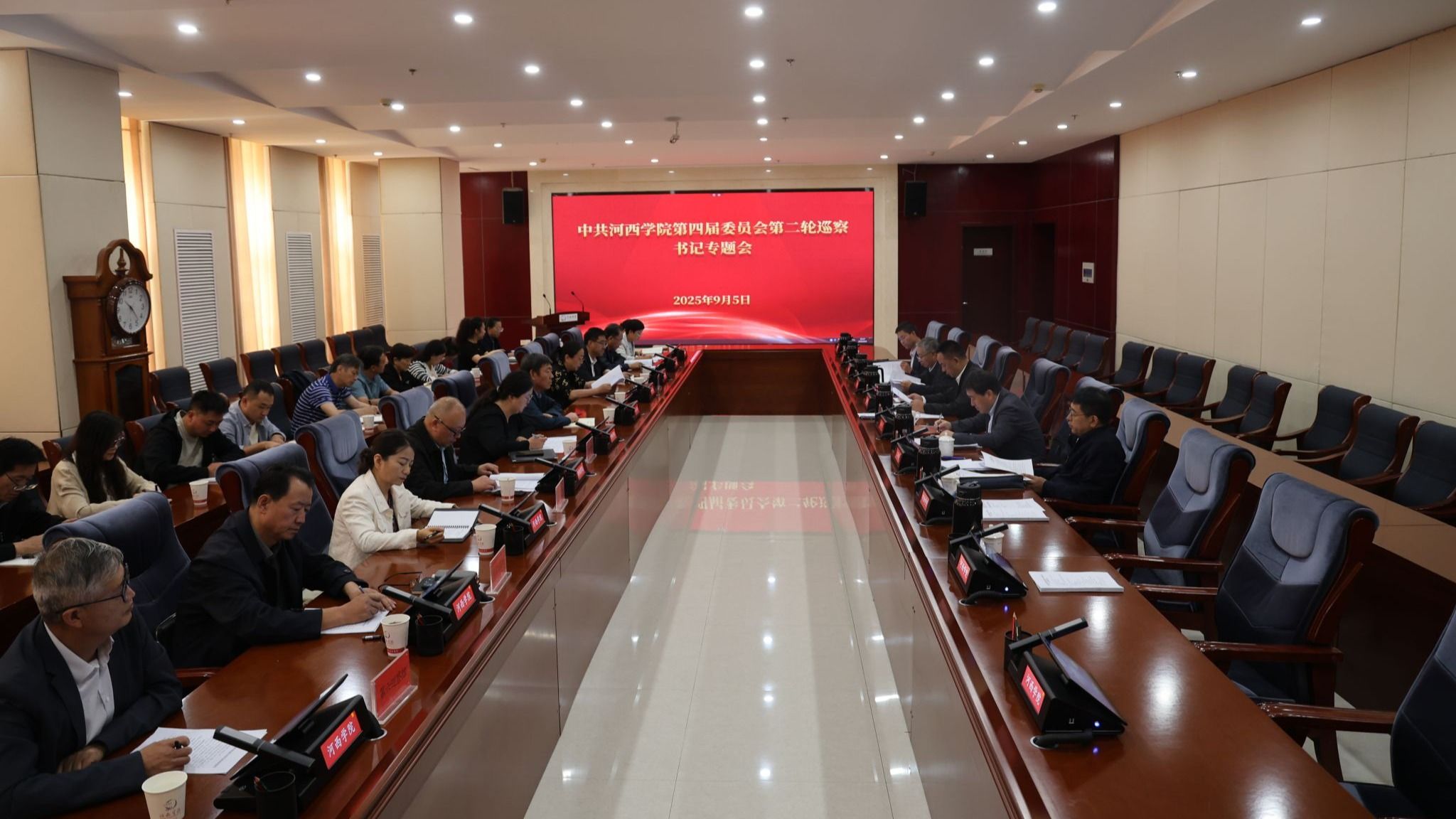 9月5日上午,党委书记、党委巡察工作领导小组组长梁兆光主持召开中共河西学院第四届委员会第二轮巡察工作书记专题会议,听取第二轮巡察工作情况汇报,研究部署巡察整改及下一阶段工作。党委副书记、校长、巡察工作领导小组副组长李广,领导小组成员高荣、王新华出席会议。
