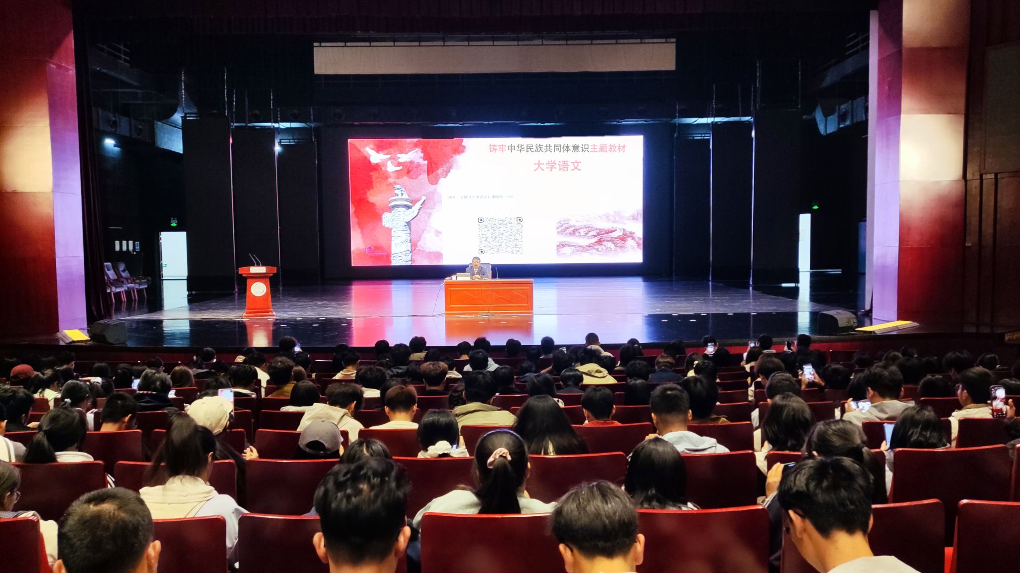 10月10日,全国首部《铸牢中华民族共同体意识主题教材:大学语文》在河西学院启用。学校党委统战部常务副部长、马克思主义学院教授蔺海鲲为700余名2025级新生带来一堂兼具文学底蕴与思政温度的铸牢中华民族共同体意识通识教育课。